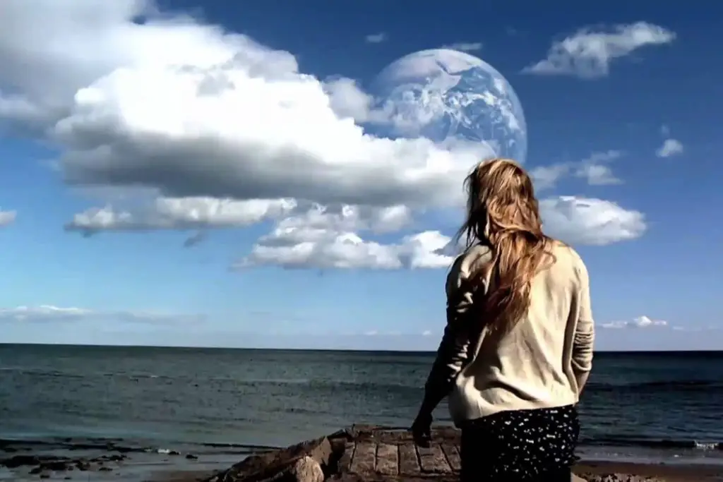 As you feel the horrific nature of the accident, it creates a deeply altering moment for the main character. A moment one can never truly come back from. A moment that controls and influences all her decisions going forward. As you feel Rhoda almost holding her breath, the film jumps forward four years. There is little information given as to what has transpired during this time, the filmmaker certain of the audience’s ability to infer. Now in the present day, the mirrored planet is even closer, constantly on the horizon, and Rhoda finds herself being released from prison.