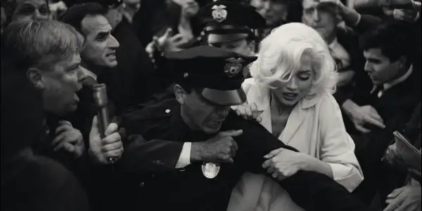 From start to finish, Blonde feels like a prime example of the male gaze. As you watch how de Armas is captured on screen, you cannot help but feel as though she is a piece of meat. It also feels as though the film was more concerned at capturing how the men of the time viewed her, leaching out the validity to the film’s biopic approach. Many of the close-ups on those surrounding Monroe are men, producers, executives, and husbands, creating a sense of the world she lived in and those looking into it, but never capturing Monroe. And when women are brought in, there is a scolding nature toward a perceived lack of humbleness and gratitude — “All of us would give an arm to be in your shoes.”