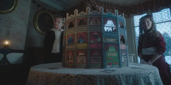 The adaption of A Christmas Carol remains true to the text of the story. The screenplay is credited as an adaption by David Morris, but the language, as in most adaptions of the novella, is taken straight from the text. The film frames the narrative as a paper theater performance that is put on by Victorian children as their grandmother (Sian Phillips) reads A Christmas Carol and serves as the story’s narrator. As she begins to read, the camera zooms into the eyes of the youngest granddaughter, and the audience is transported into the paper theater performance as she imagines it.