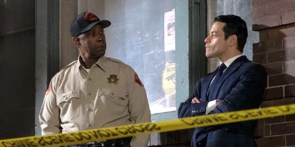 Malek from frame one feels out of sync. He’s an actor who excels at stillness and aura of unknowability. That’s largely what made him effective on the series Mr. Robot, but here, as a hot-shot police detective, it renders his presence detached and awkward. One would be forgiven for expecting some twist by which he is the killer. Oops, is that a spoiler?