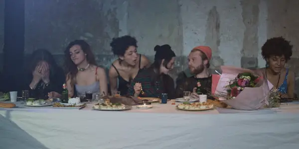 Apolonia, we quickly learn, was raised in the bohemian milieu of Parisian anarchist performance art, living in her parents’ cavernous, dilapidated theater surrounded by performers of all stripes. Glob‘s infatuation with the milieu is undeniably well-founded, and when Apolonia, from this charmed vantage point, describes feeling like “a princess in a castle everyone is jealous of” we understand why: “If I ever imagined Bohemia, this is what it looked like,” Glob marvels over footage of an enormous banquet in the performance space. It’s hard to disagree.